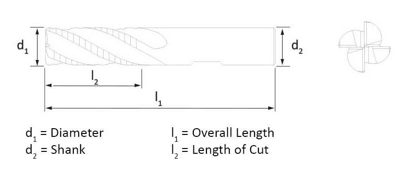 • 3/16" has 3 flutes. 1/4"-3/4" has 4 flutes. 1" has 6 flutes.