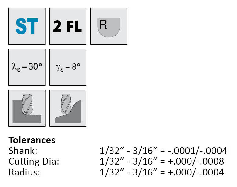 Series 253 5° 2 Flute Tapered Ball Die & Mold Tools