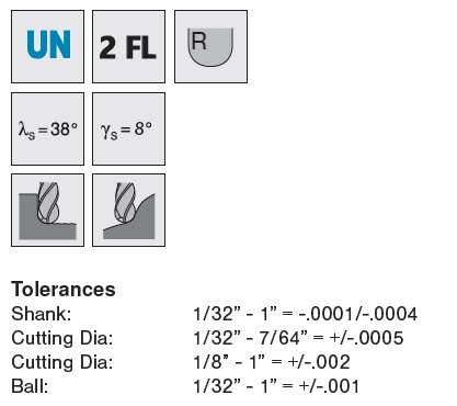 These General Purpose 2 Flute Ball Nose end mills are designed for use in all standard applications in most materials. Available Uncoated or Aluminum Titanium Nitride (AlTiN) Coating.