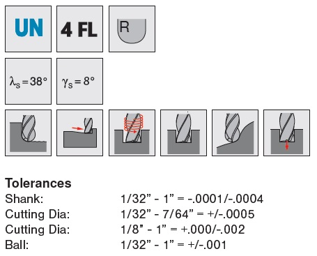 4 Flute MEDIUM HELIX BALL NOSE